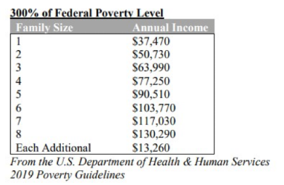 - Top page of Federal or State Income Tax showing individual is at or below 300% of the Federal Poverty Level: